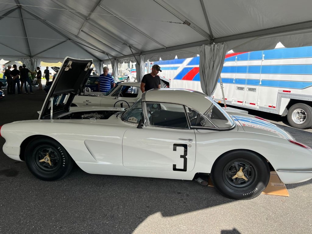 In keeping with other fine traditions, the organizers of the weekend preclude racing on the Sunday – some noise (what noise?) abatement rule – and make up for it with a Concours that, this year, gave the primacy to Corvette to celebrate the 70th anniversary of the marque (though as we all know, some stellar examples – Sebring ’57 anyone – were already going around well before then). In any case, it did give rise to some stellar displays – as you can tell here: