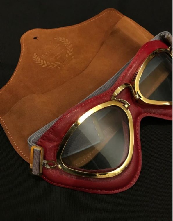 These Belle Vue goggles have been handcrafted with pride in Argentina and are available in Alfa (burgundy, almost) Red leather with bronze accessories