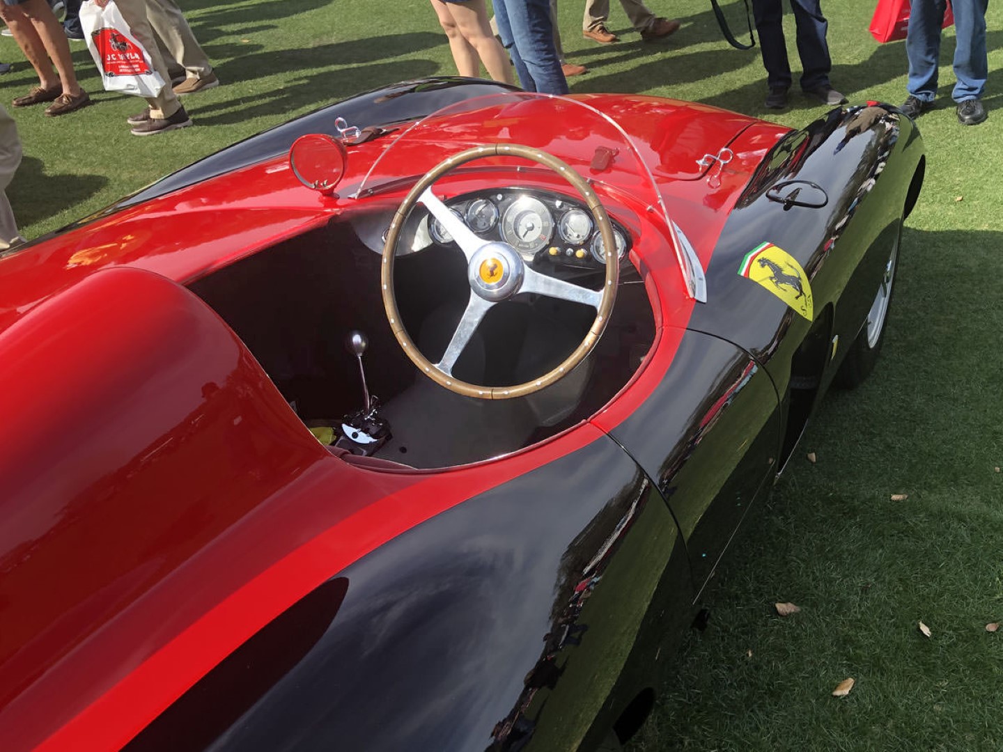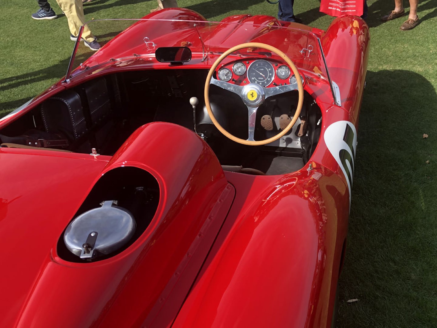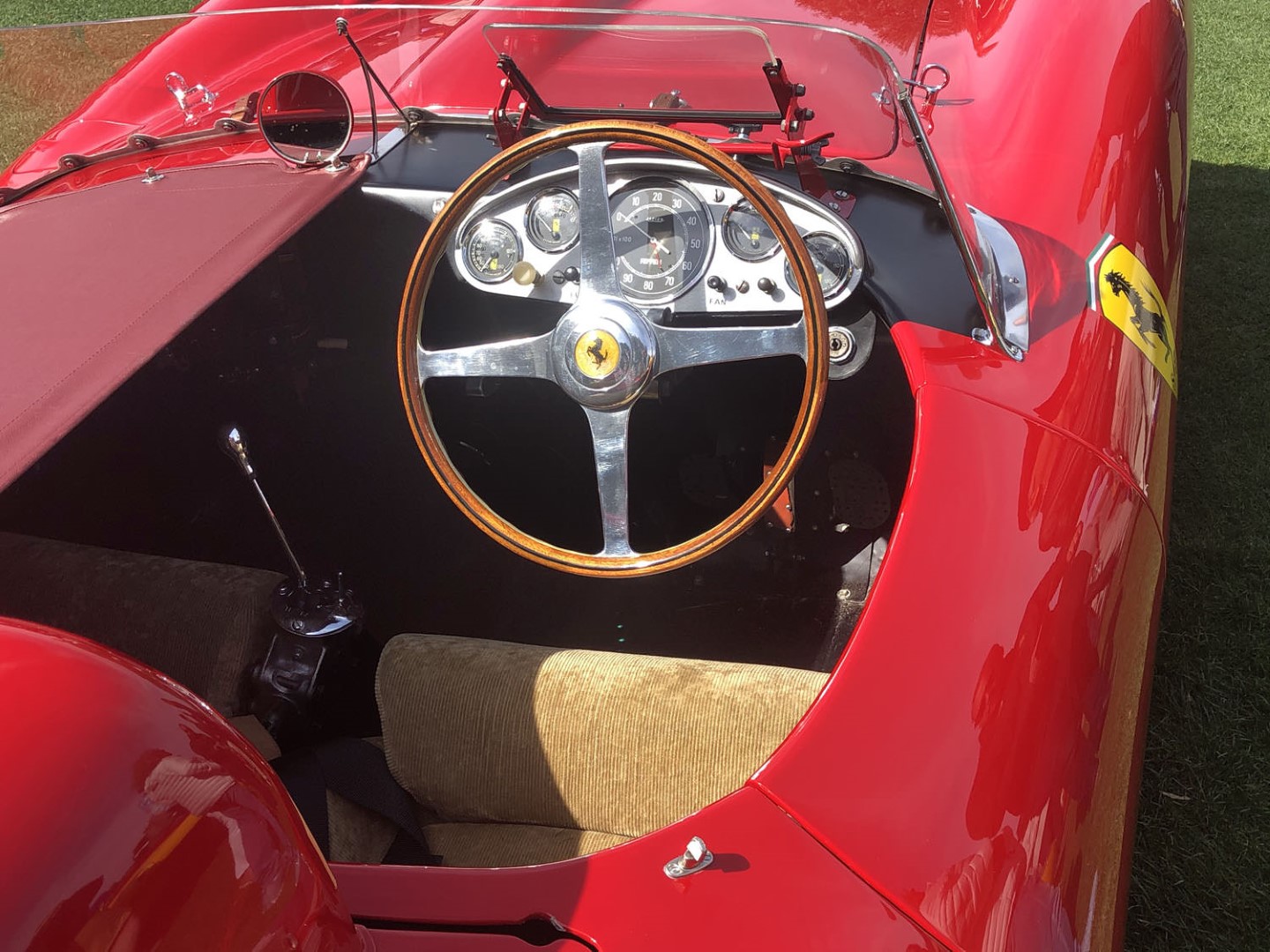 We then migrated our operations overnight to be ready for a great show on Sunday and were not disappointed. While it was hard for us to get around much, what with a constant stream of friends old and new dropping by for a chat or for a look at the gear we had brought with us. Luckily, Dave (yes, him again), had undertaken one of his learned expeditions – the comparative study of racing Ferrari cockpits and relative position of instruments clusters in the 1950s. We are glad to submit that amazing collection to your enlightened views and suggest we patiently wait for the monograph that is sure to follow (or not 😉):