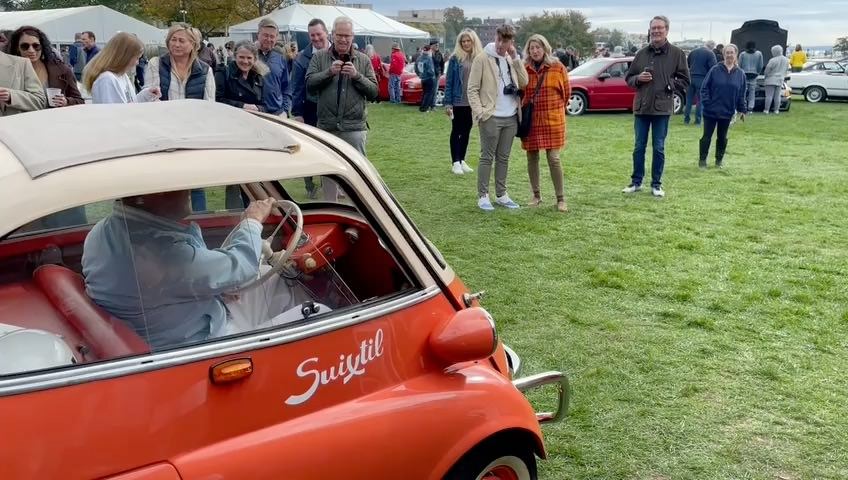 Mariano (yes, he is everywhere in his territory), freshly back from his previous Concours (that’s the life alright) set-up a gorgeous stand with all the trimmings (with, even, a cute Isetta that looked no bigger than some of the ice-cream scoops we have been known to wolf down to welcome visitors and friends) and including our latest helmet creations from the Suixtil Spirit line. And visitors had a truly great time – what’s there not to like between all the brilliantly organized activities and friendly settings. We are very fortunate he brought back a few photos of the whole gatherings – you might want to pull out those shades: a lot of smiles in there….