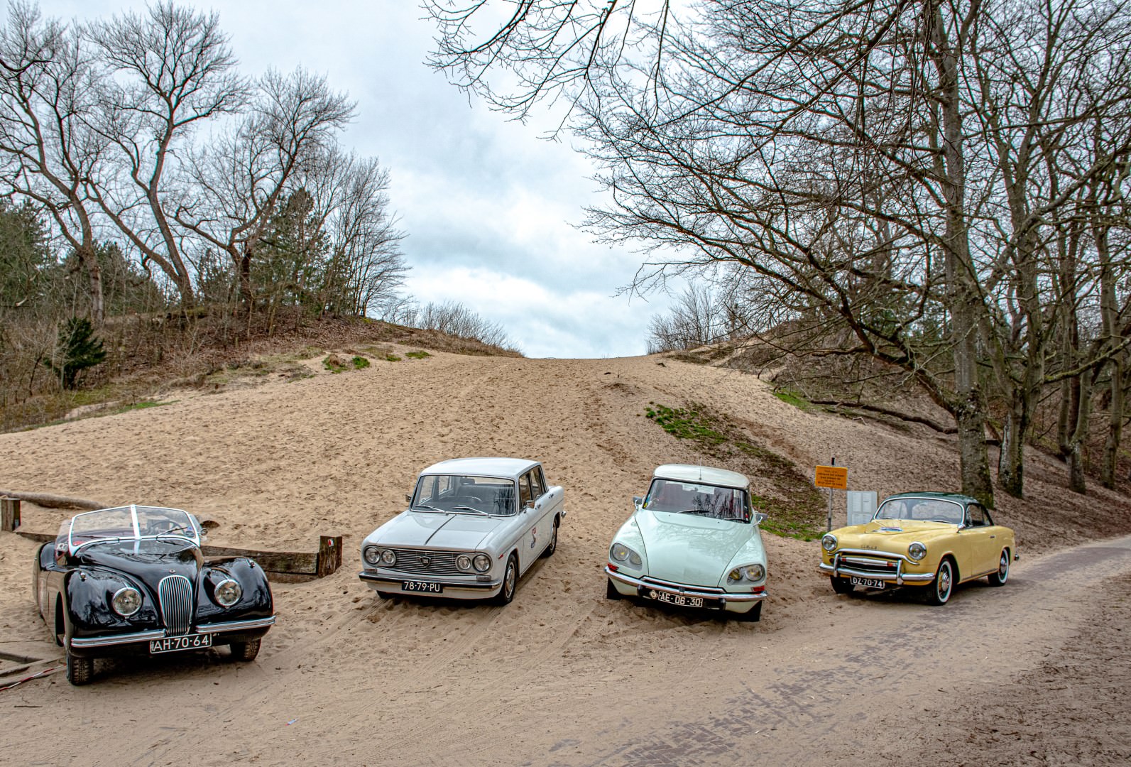 before, after their races. It was also the destination of a challenge rally in which Maus Gatsonides (he, who also invented the dreaded Gatsometer, and was also a fierce rally driver) took part in before becoming its organizer. And it was therefore a logical point for Alexander – our Dutch distributor and friend – to use as a rallying point when he bravely decided to (re)launch the race as a regularity (and, especially, fun) small-scale event.Now in its fourth year, participants, and with the restrictions made necessary by the pandemic, the rally was still held in that first weekend of March. It turned out wonderfully – what else would you qualify a gathering of such British luminaries as a Morgan, a Triumph and 3 Jaguar, along with beauties from France (that SIMCA 9 Sport…), Italy (that pre-war Lancia is simply nothing short of spectacular), Germany (by way of Stuttgart, of course) and even the Netherlands (a couple of DAF) in such difficult times. And everything went particularly well – as the pictures underneath attest (even if the weather, predictably for this time of the year, meant that friends with the foresight of sporting their Silverstone or Sebring fared better than those who had overlooked the need) .