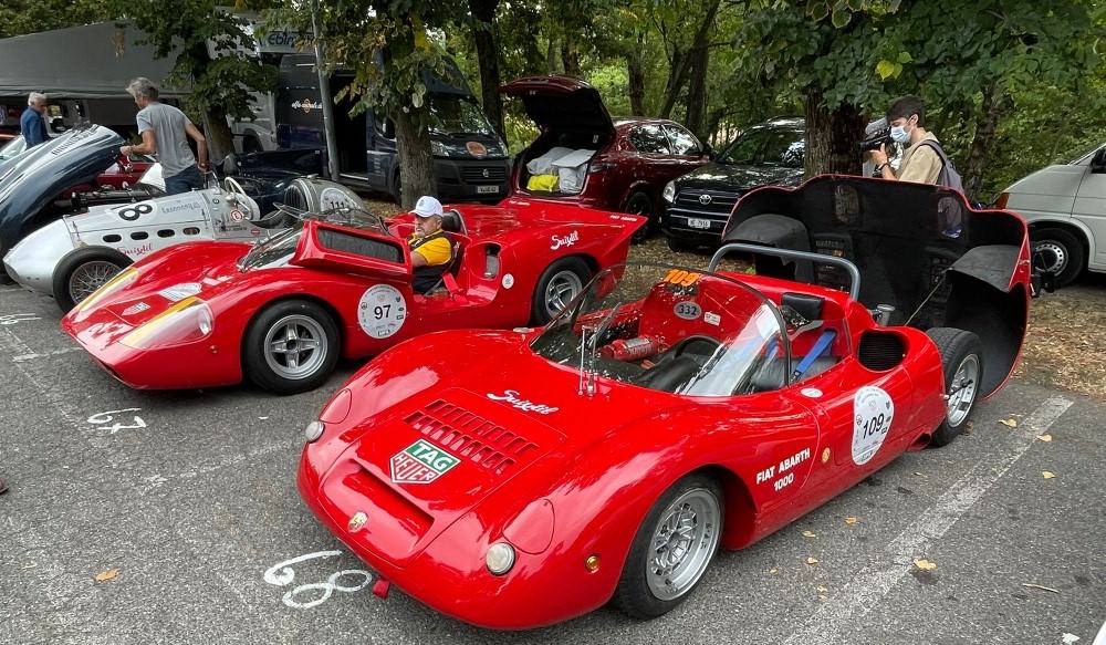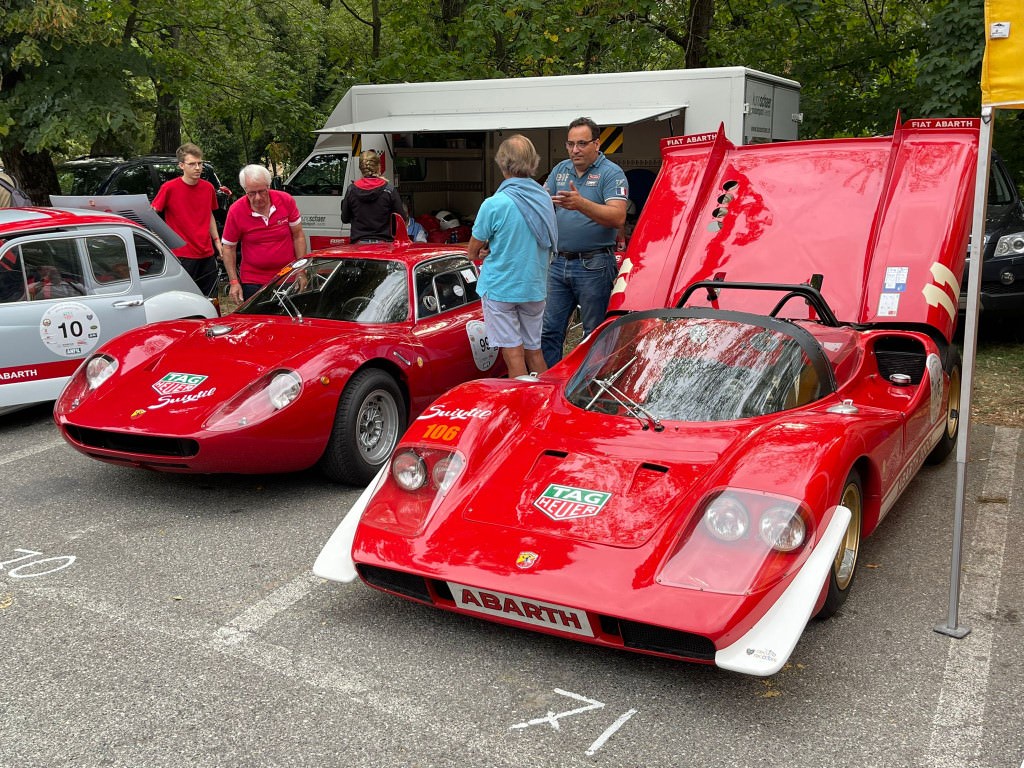 A lot to take in in 1 shot – a Cisitalia from 1948 next to 2 Abarth – one 2000SP and a 1000SP