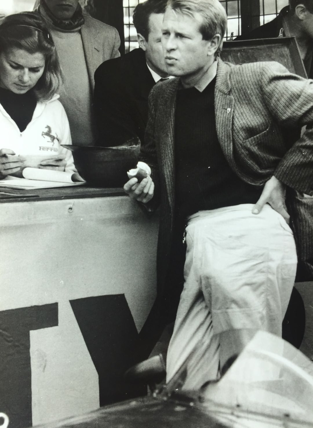 von Trips was often spotted sporting his original race pants and a Monza cashmere sweater.