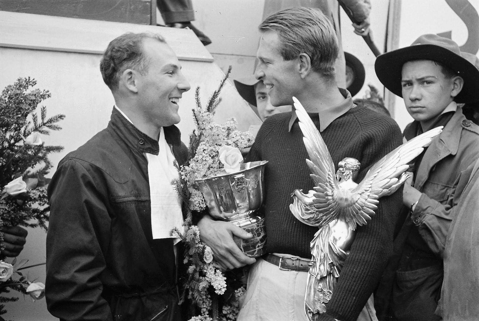 - Sir Stirling & Peter Collins – winner of the Belgian GP, 1956(c)George Phillips Photograph Collection – the REVS Institute